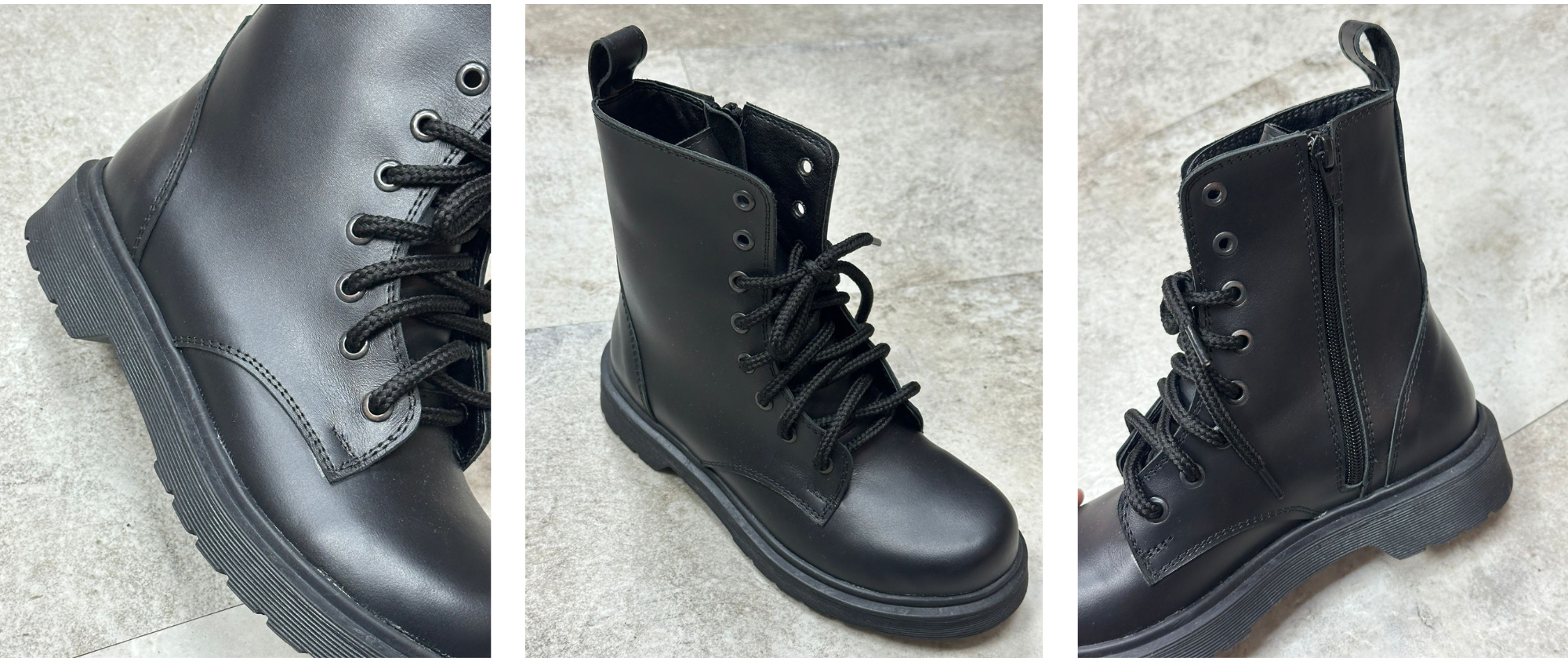 Borcego de cuero vacuno con base de goma, súper flexible y cómoda.