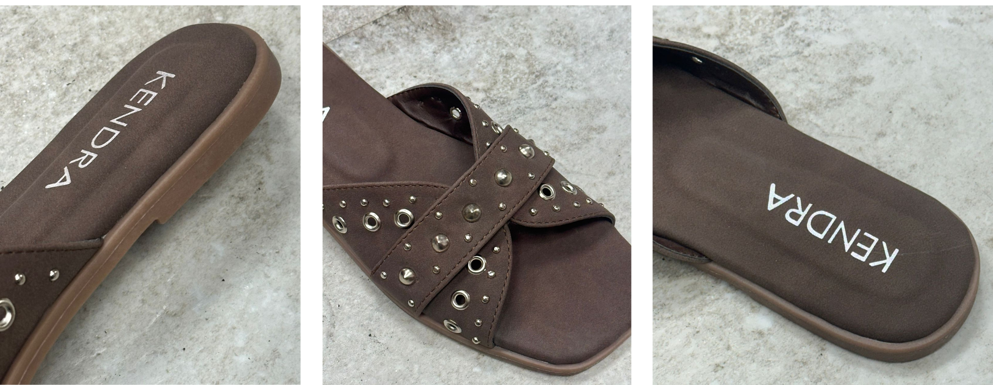 Chata de cuero sintético con detalle de tachas metálicas en la capellada.