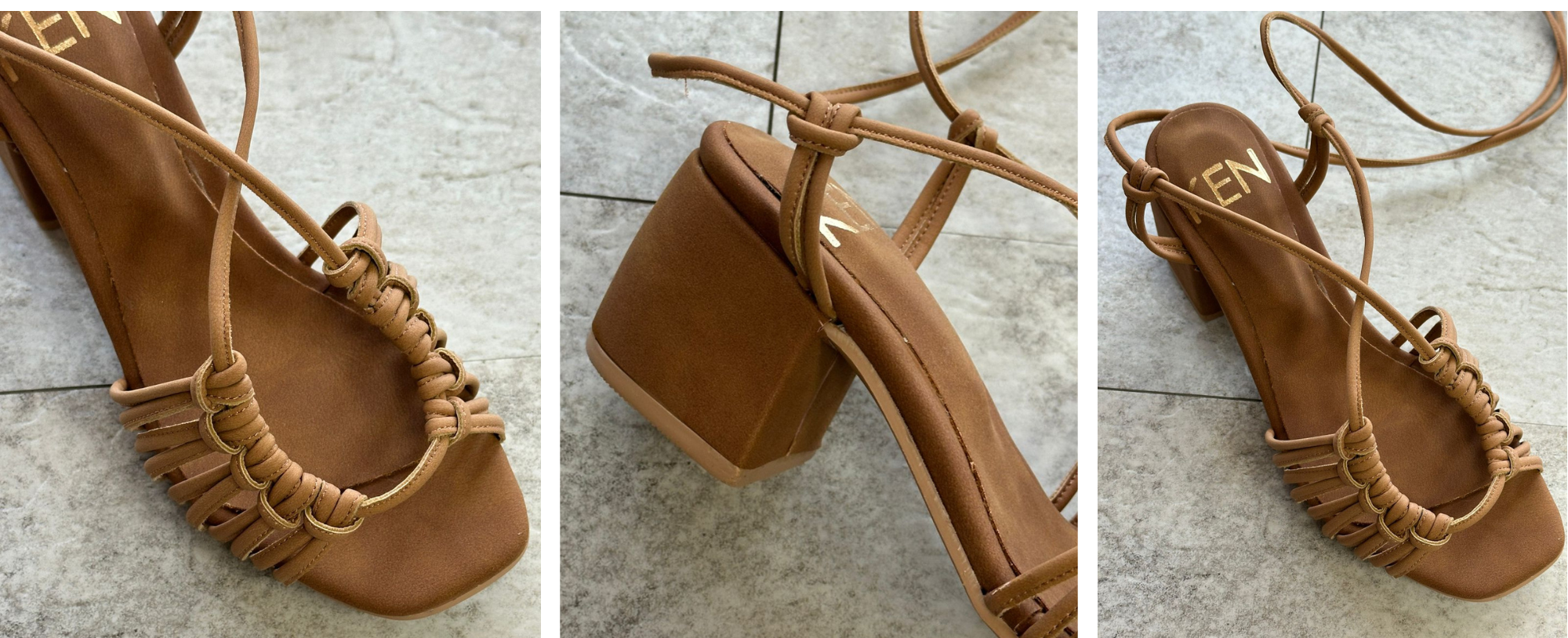 Sandalia de cuero vacuno con ajuste regulable mediante tiras.