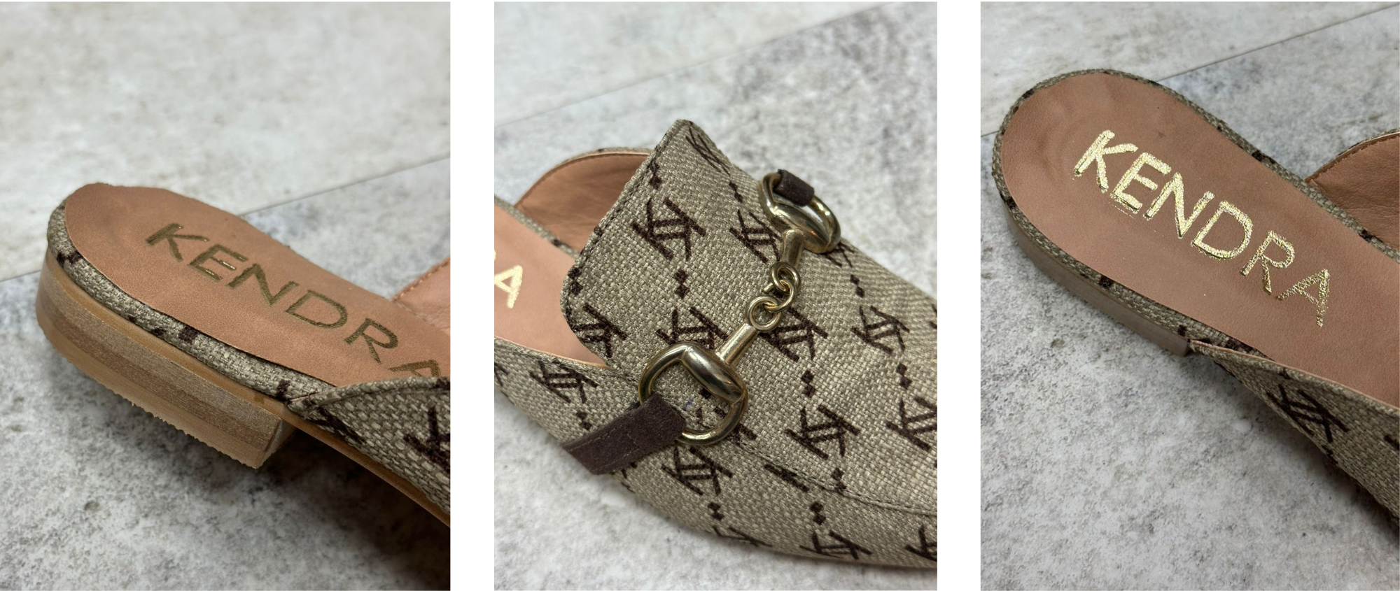 Slipper de cuero estilo Gucci con herraje metálico en la capellada. Suela artesanal simil madera.