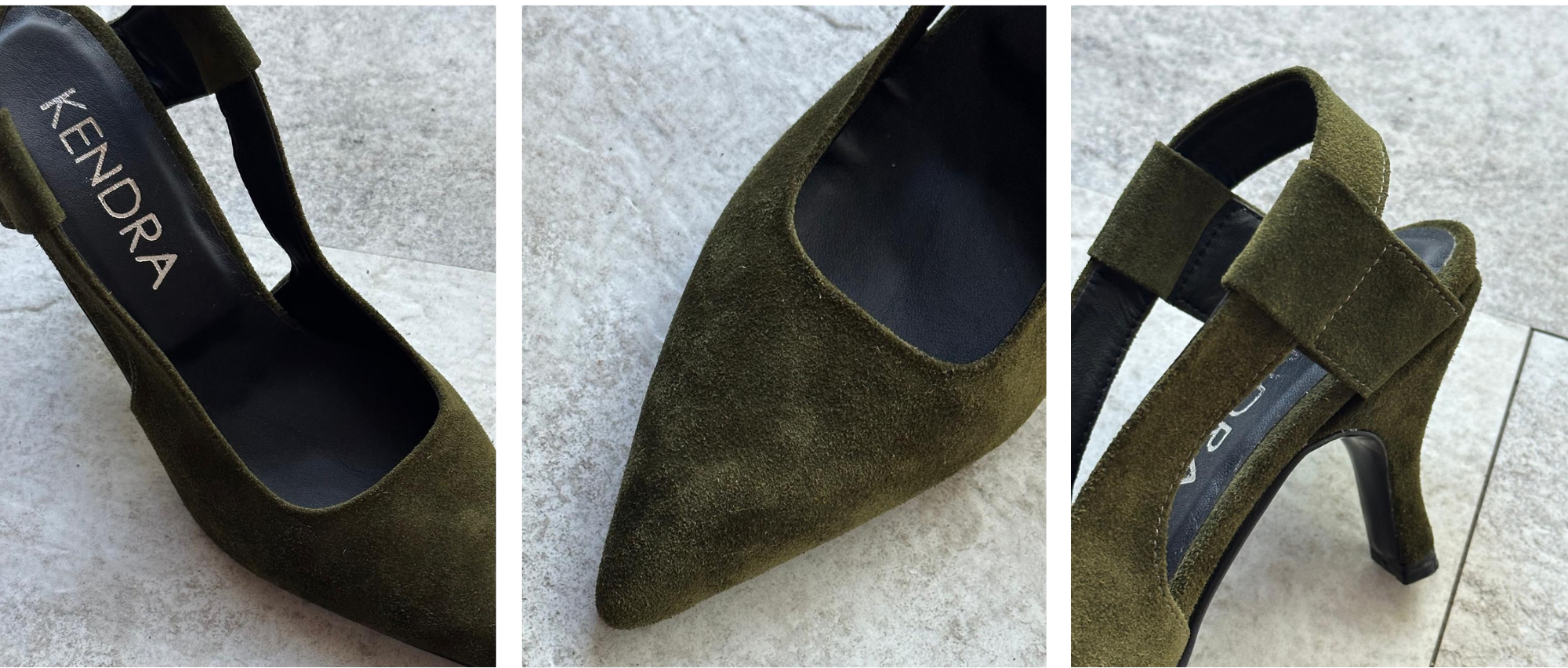Stiletto confeccionado en gamuza de cuero vacuno.